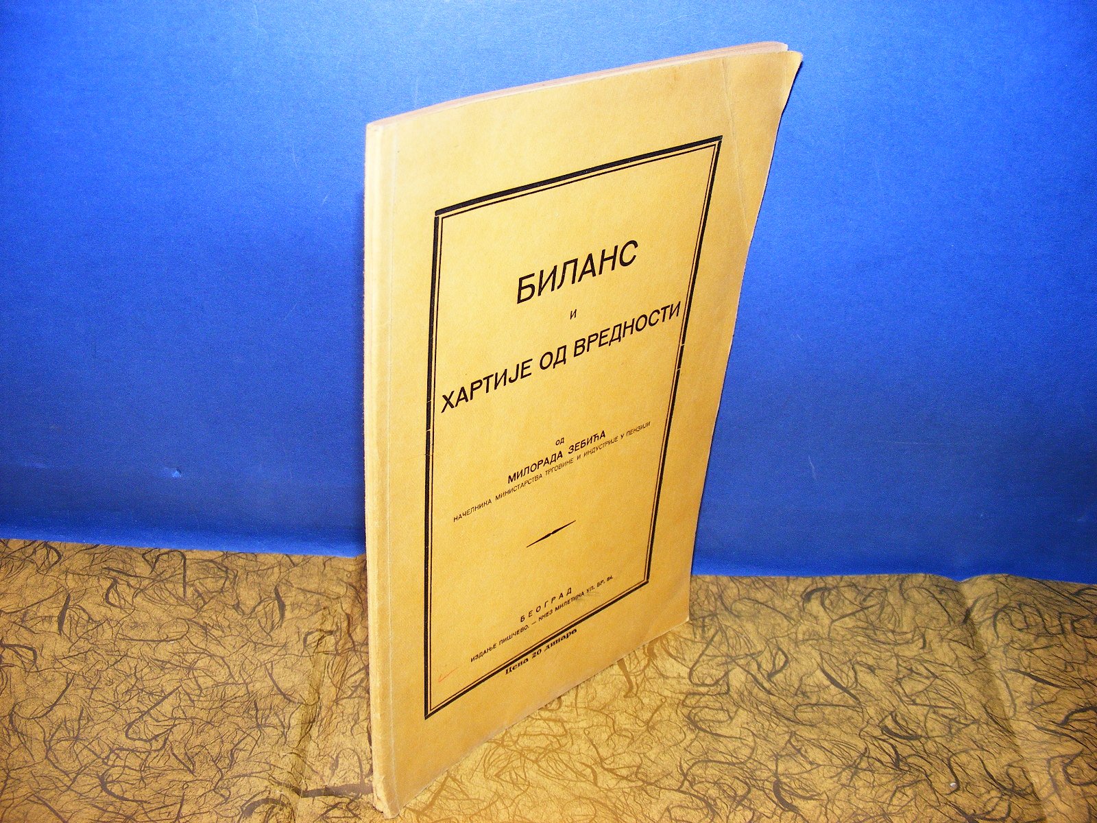 Bilans i hartije od vrednosti Milorad Zebić, načelnik ministarstva trgovine i industrije u penzijiPiščevo izdanje, Beograd, 1932. Mek povez, 23 cm, 41 strStanje vrlo dobro