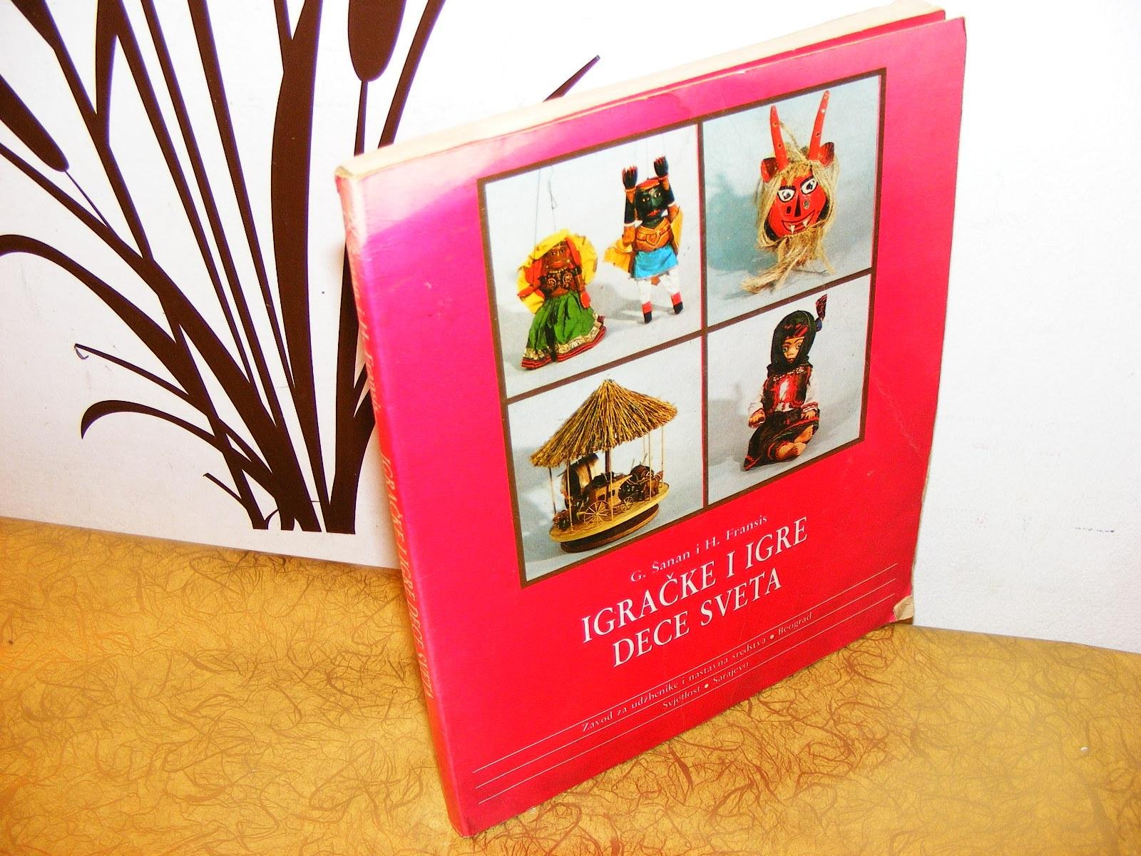 Igračke i igre dece svetaGabriel Šanan i Hazel FransisIzdavači: Zavod za udžbenike, Beograd i Svjetlost, Sarajevo Prvo izdanje, 1989. Mek povez, format 21×25 cm, 129 strana, fotografije u boji. Na predlistu potpis. Korice knjige imaju tragove savijanja. Na tri strane običnom grafitnom olovkom podvučene rečenice. Stanje vrlo dobroKnjigu čine dva dela. Prvi deo je uvodni esej o kulturnom značaju igračaka i igara. Drugi deo sadrži fotografije sa izložbe tradicionalnih dečjih igara i igračaka, organizovane od strane UNESCO-a.